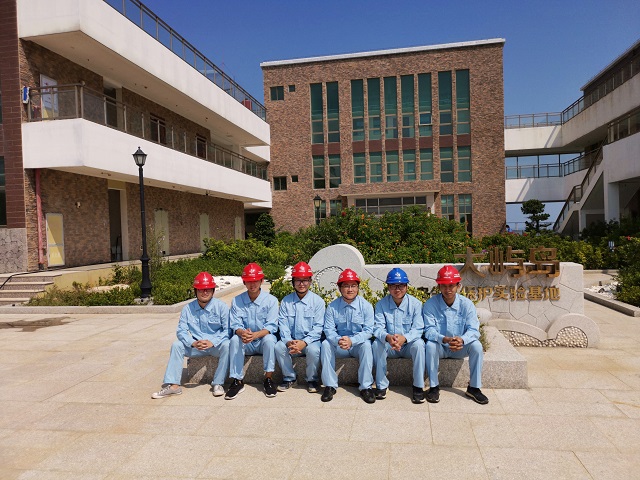 就职于中交上航公司的2019届给排水工程技术专业毕业生王逸飞(左二)和张怡坤(右一)与项目团队成员合影