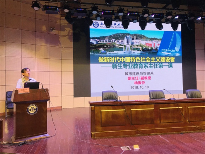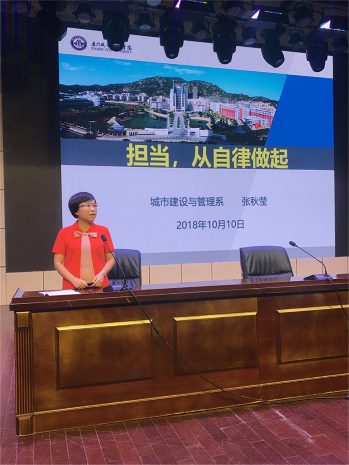 城建系副主任杨振仲以《做新时代中国特色社会主义建设者》为题,向同学们详细介绍了该系的专业特色和优势,并就专业学习及职业发展给予诚恳建议。系总支副书记张秋莹以学生的品德教育及行为规范要求为切入点,在《担当,从自律做起》的主题讲演中鼓励同学们自制、自治、自立,成长为能担当敢担当善担当的新青年。