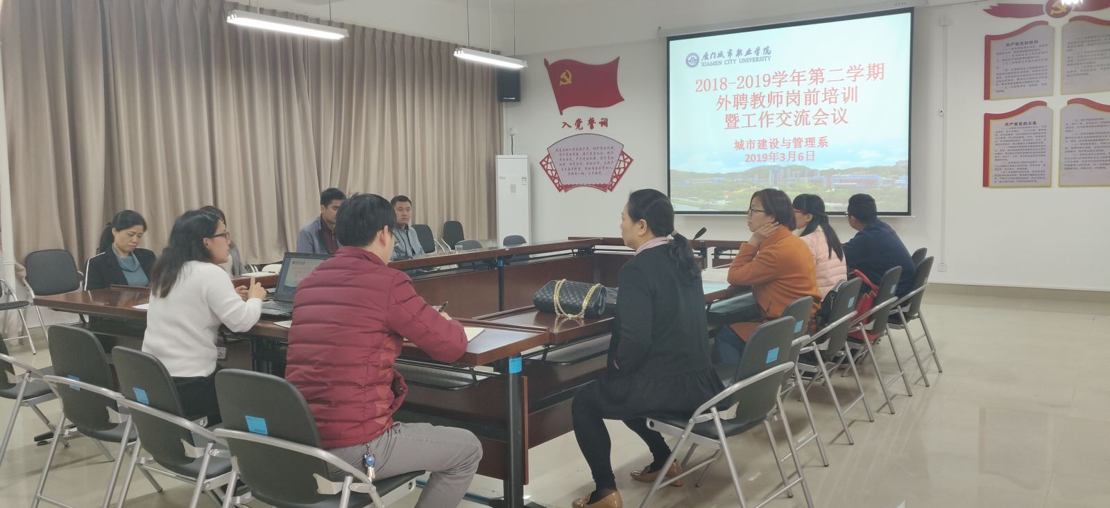 近日,我系在南校区D608会议室召开2018-2019学年第二学期外聘教师岗前培训暨工作交流会。